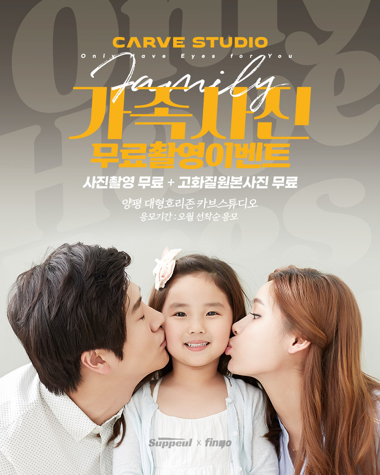 오픈기념으로 카브스튜디오에서 [ 가족사진 무료촬영 ] 을 진행하려고 합니다.